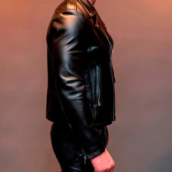 Men’s Genuine Lambskin Leather Biker Jacket – Handmade Black Motorcycle Jacket