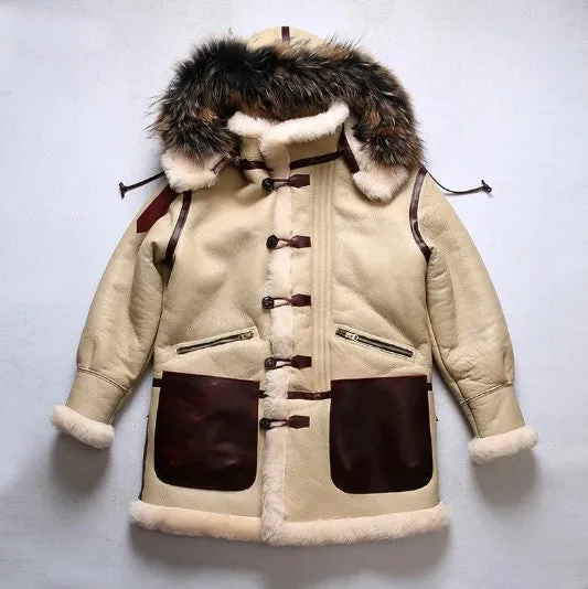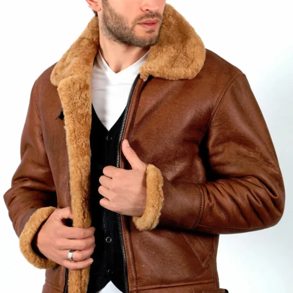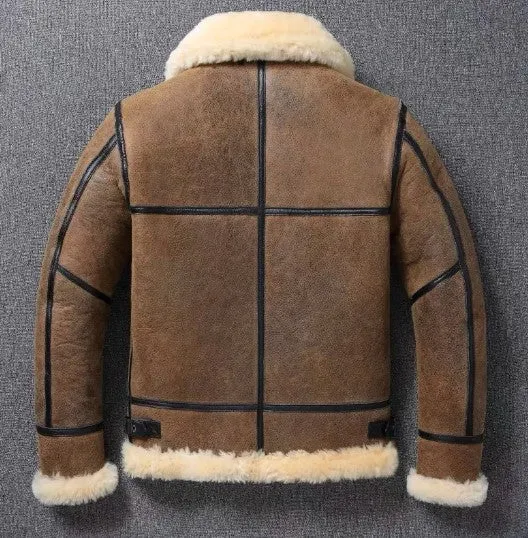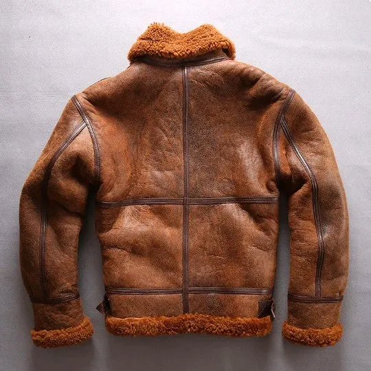 Men’s B3 Style Fur Jacket – Winter Warm Genuine Leather Sheepskin Shearling Coat