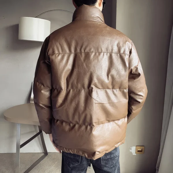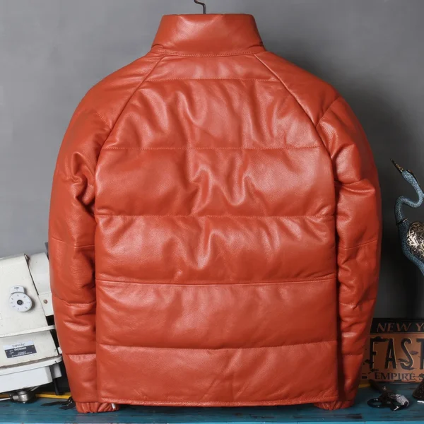 Mens Grey Genuine Sheepskin Stand Collar Winter Warm Casual Baggy Style Padded Puffer Leather Jacket