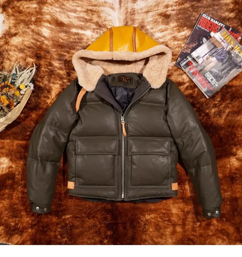 100% Natural Sheepskin Jacket: Fashionable Street Leatherwear for Moto Riders
