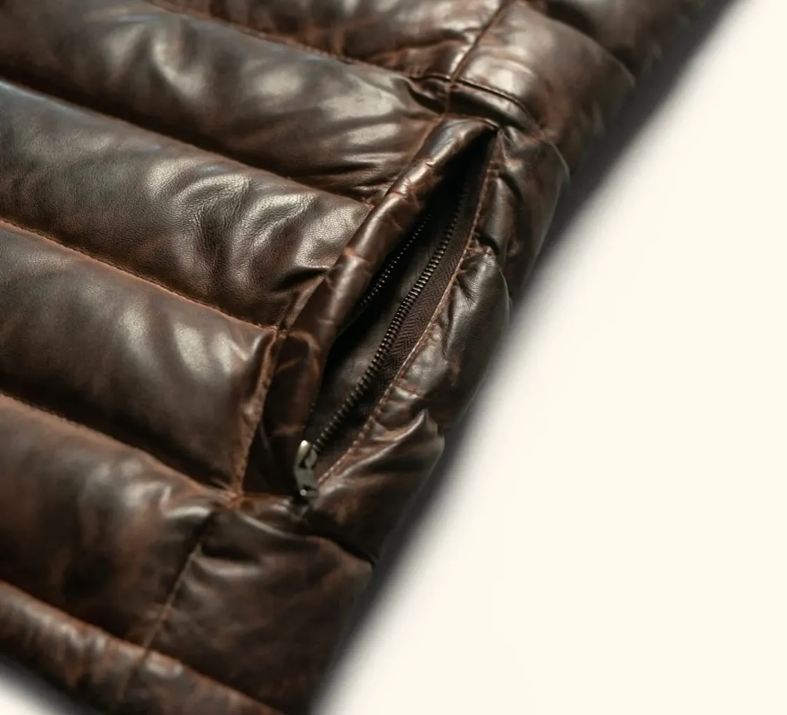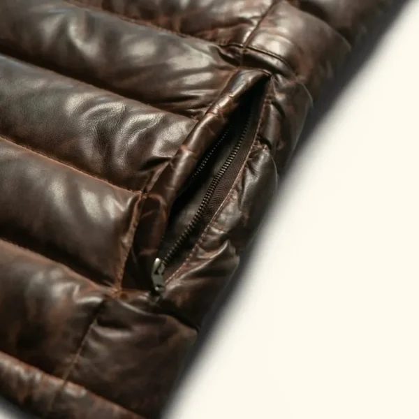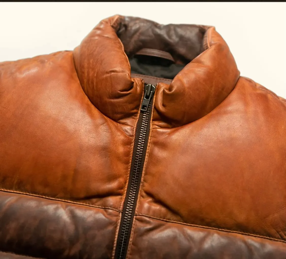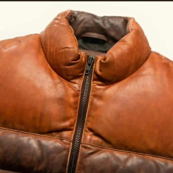 Brown Sheepskin Men’s Puffer Leather Jacket – Stylish and Warm Outerwear