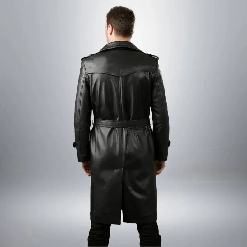 Handmade Full-Length Black Sheepskin Leather Trench Coat