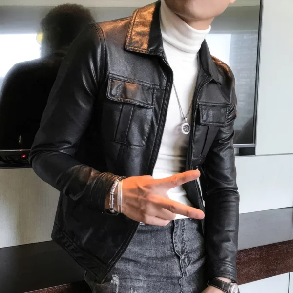 Be the first to review “Mens Black Biker Genuine Sheepskin Shirt Collar Café Racer Retro Zip-Up Casual Slim Fit Moto Rider Smooth Leather Jacket”