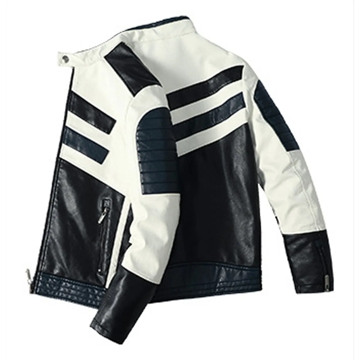 Be the first to review “Mens Black Biker PU Café Racer Stand Collar Striped Black Blue White Toned Outfit Moto Rider Zip-Up Casual Classic Streetwear Slim Fit Faux Leather Jacket”