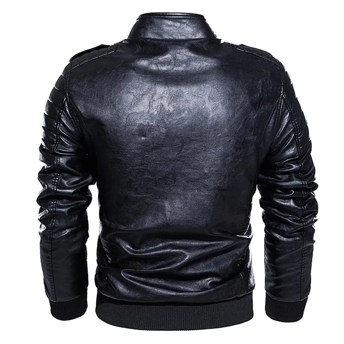 Mens Black Bomber Biker Genuine Sheepskin Stand Collar Classic Fashionable Outfit Moto Leather Jacket
