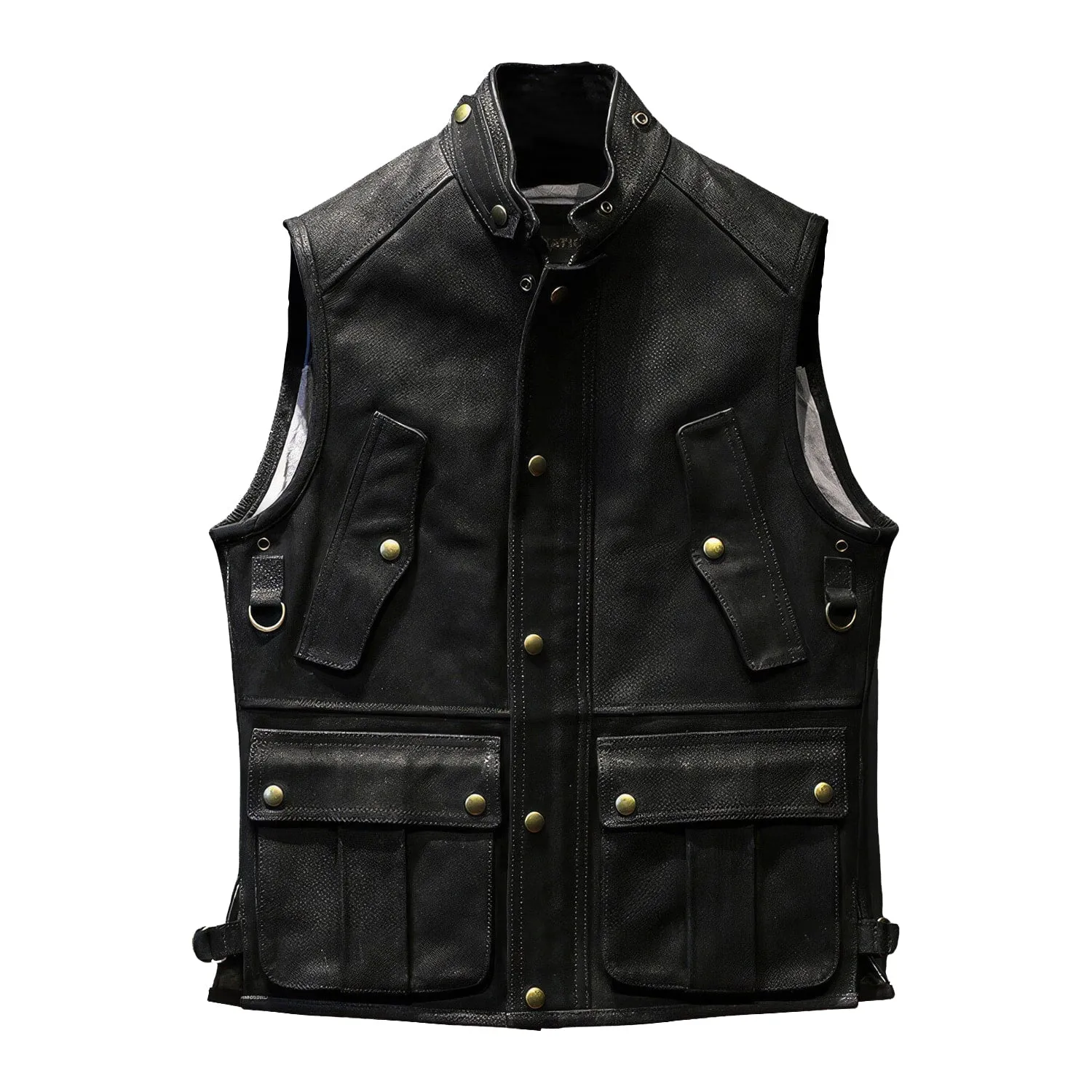 Be the first to review “Mens Black Genuine Cowhide Stand Collar Vest Motorcycle Biker Sleeveless Classic Retro Rock Hunter Multi Pockets Leather Waistcoat”