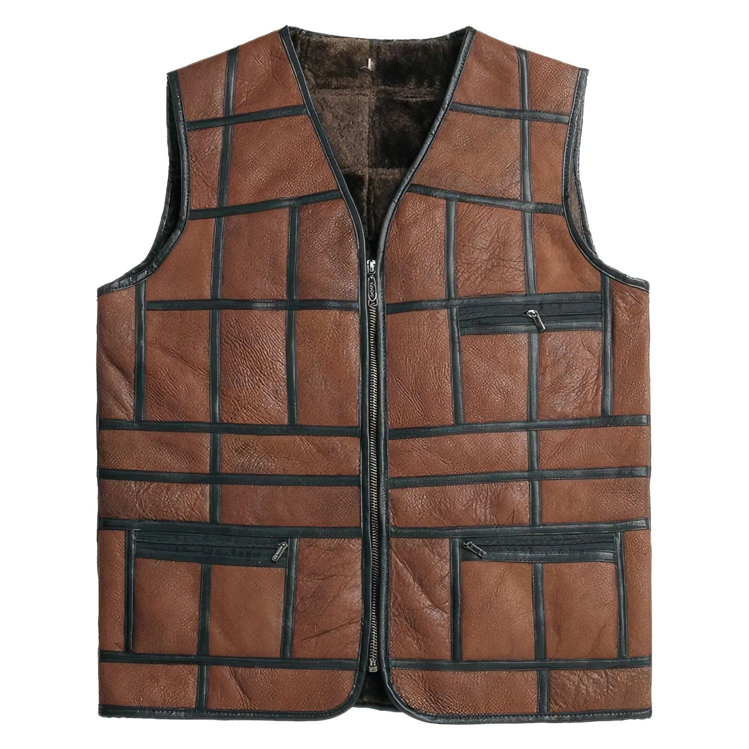 Be the first to review “Mens Brown Genuine Sheepskin Leather Black Stripped Design Vest Classic Fashion Casual Distressed V-Neck Leather Waistcoat”