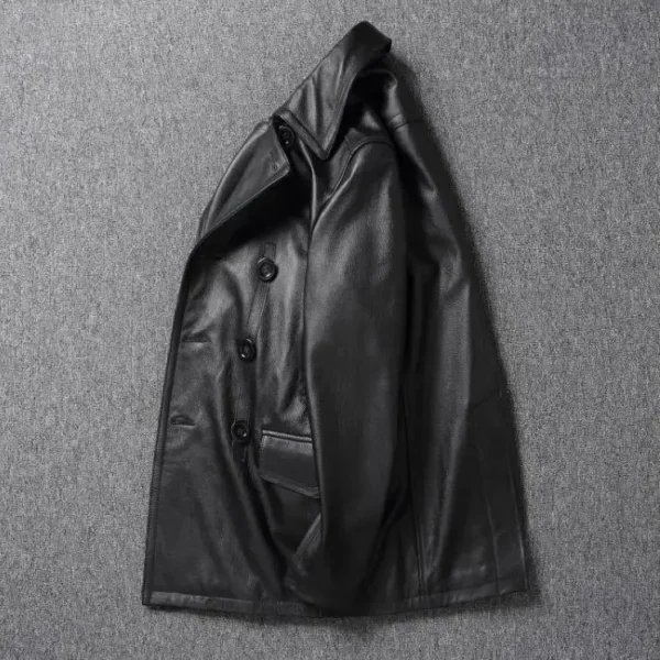 Be the first to review “Men’s Black Cowhide Leather Trench Coat – Genuine Leather Long Windcoat”
