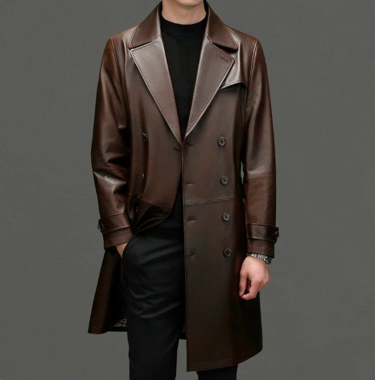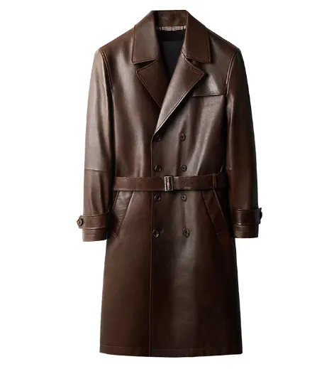 Men’s Business Leather Trench: Classic Style in Solid Colors