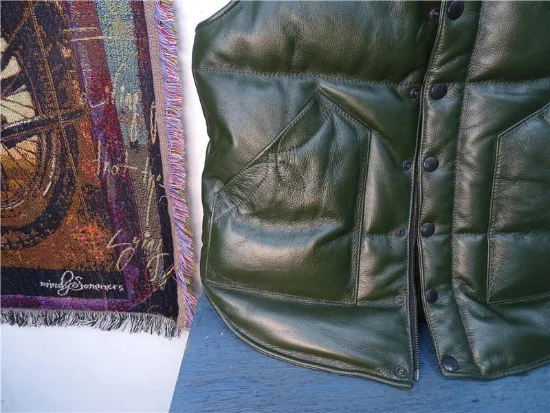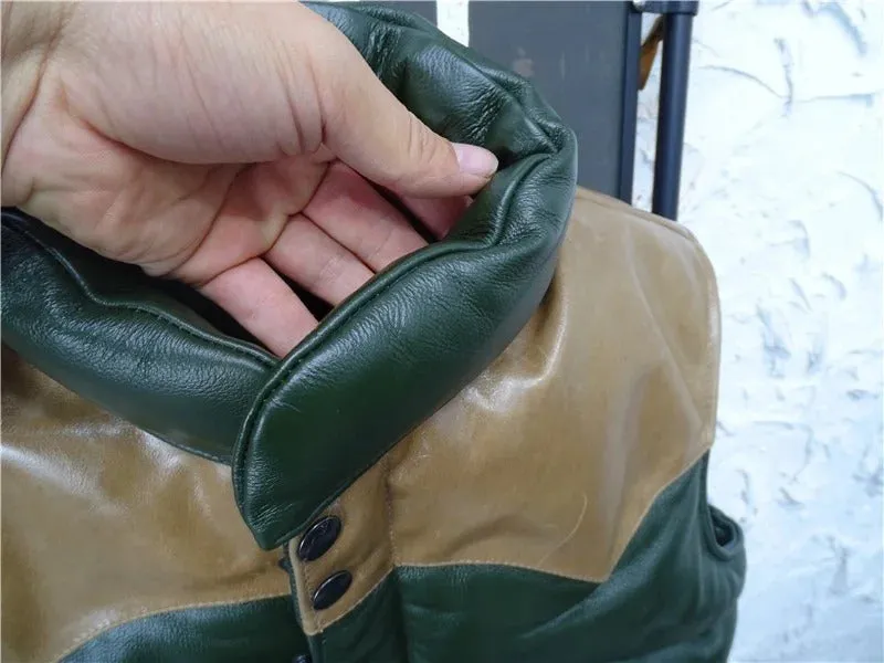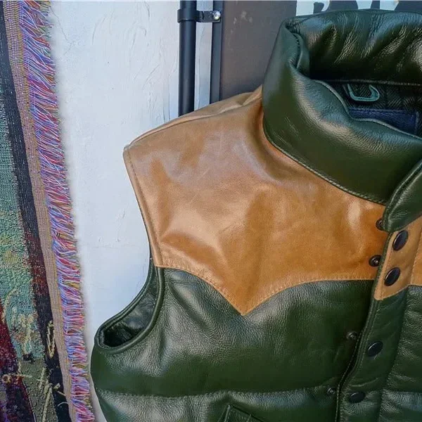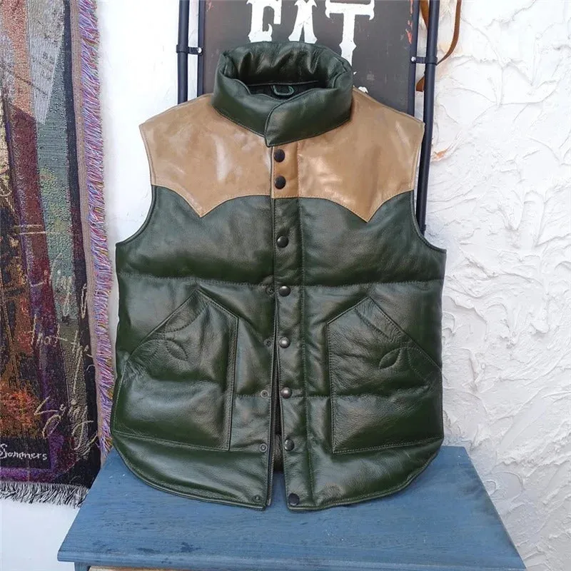 Men’s Casual Sleeveless Stand Collar Genuine Leather Waistcoat