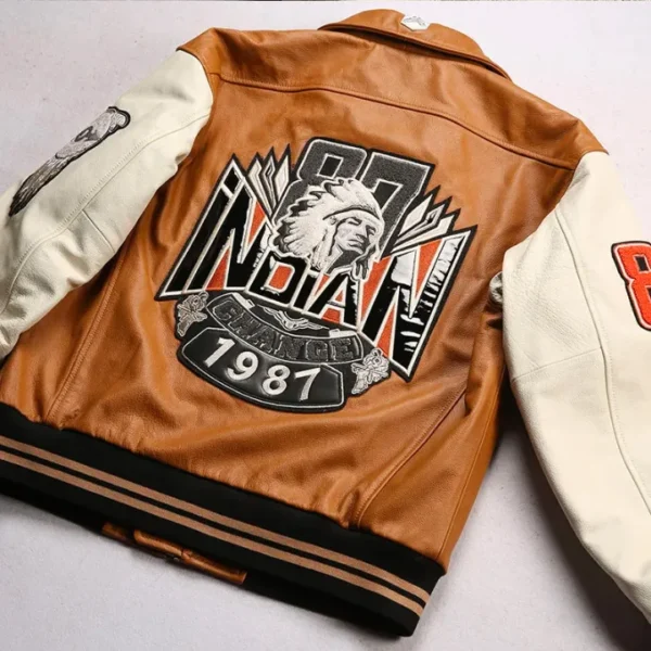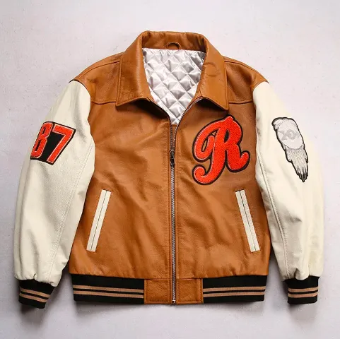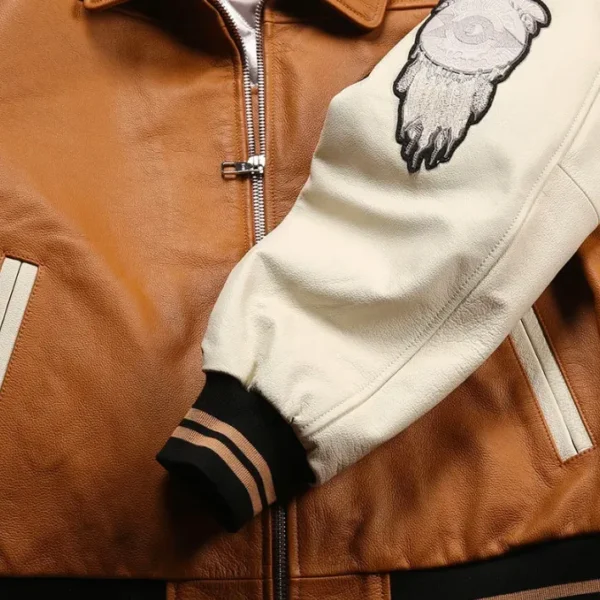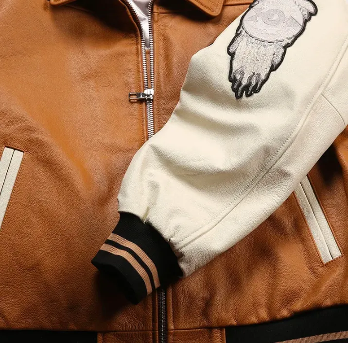 Men’s Cow Leather Flight Jacket: Indian Embroidery Fashion Casual Sports Suit