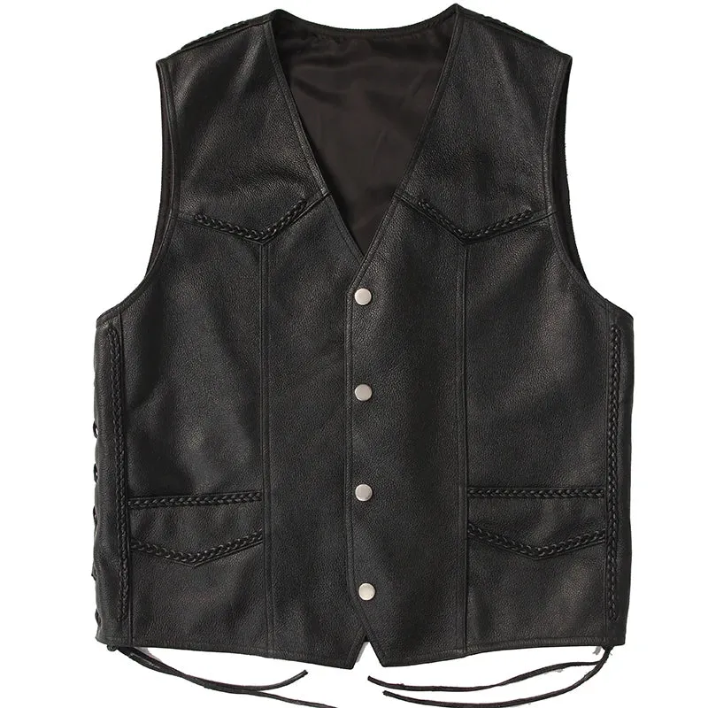 Men’s Motorcycle Biker Club Cowhide Leather Vest