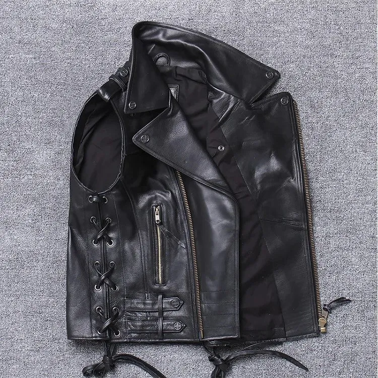 Men’s Premium Cowhide Motorcycle Vest – Vintage Designer Style