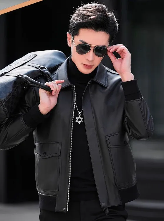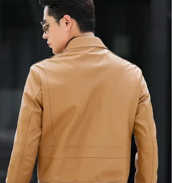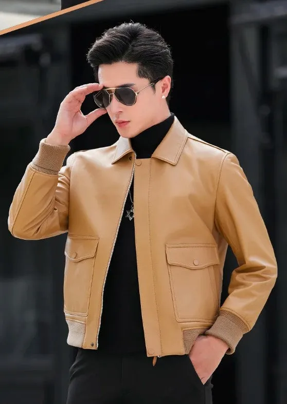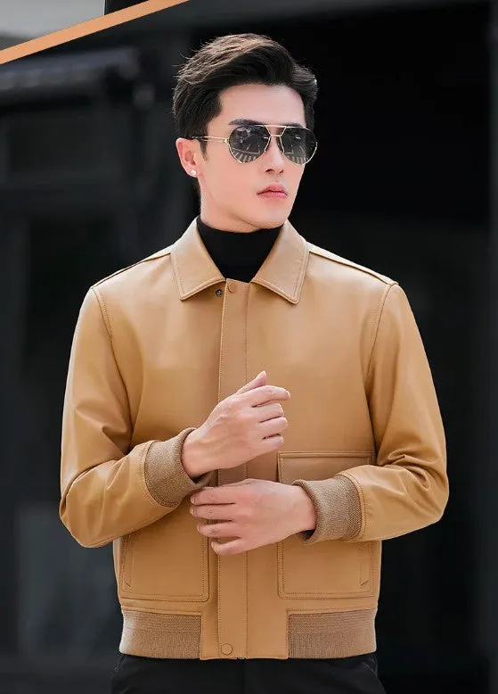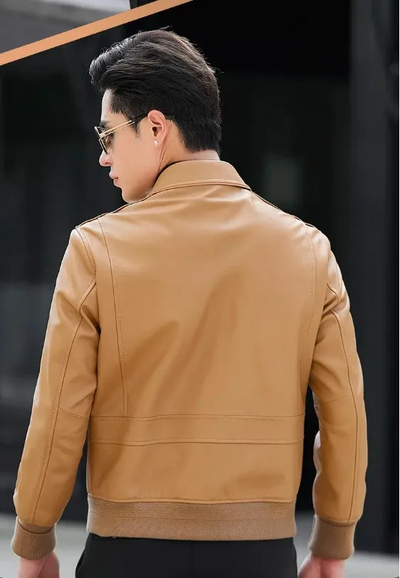 Men’s Short Polo Collar Casual Sheepskin Coat