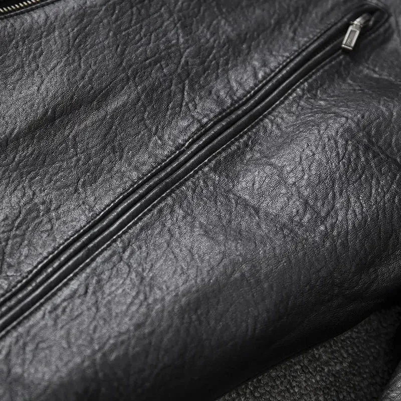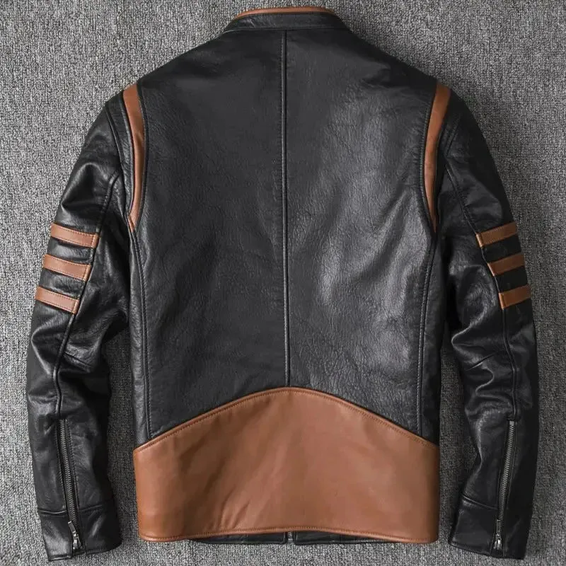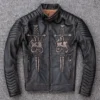 Men’s Slim Fit Distressed Moto Biker Leather Jacket: 100% Cowhide with Skull Design