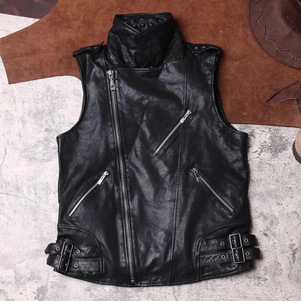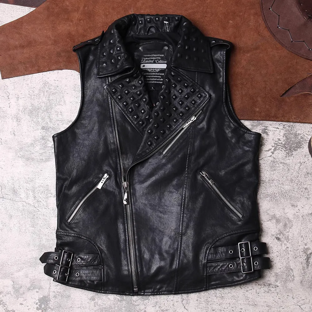 Men’s Stylish Punk Vintage Sheep Leather Vest