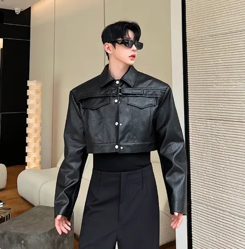 Men’s Wide Shoulder Silhouette Black Motorcycle Leather Jacket