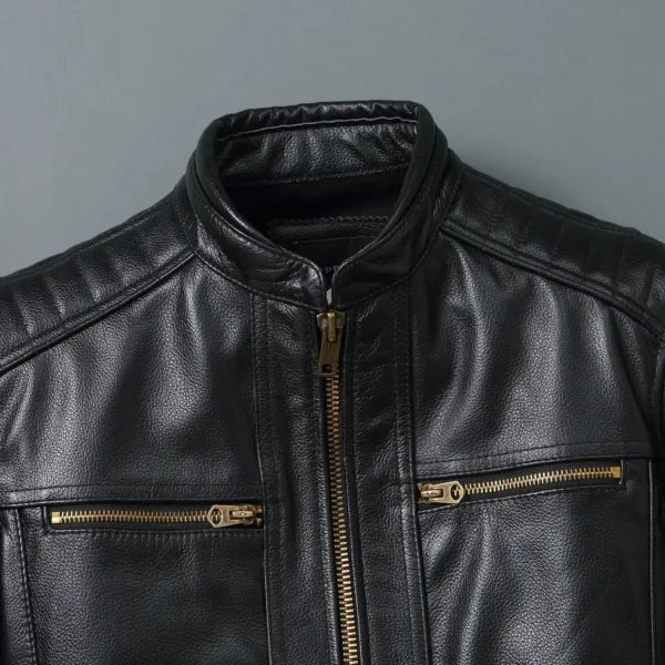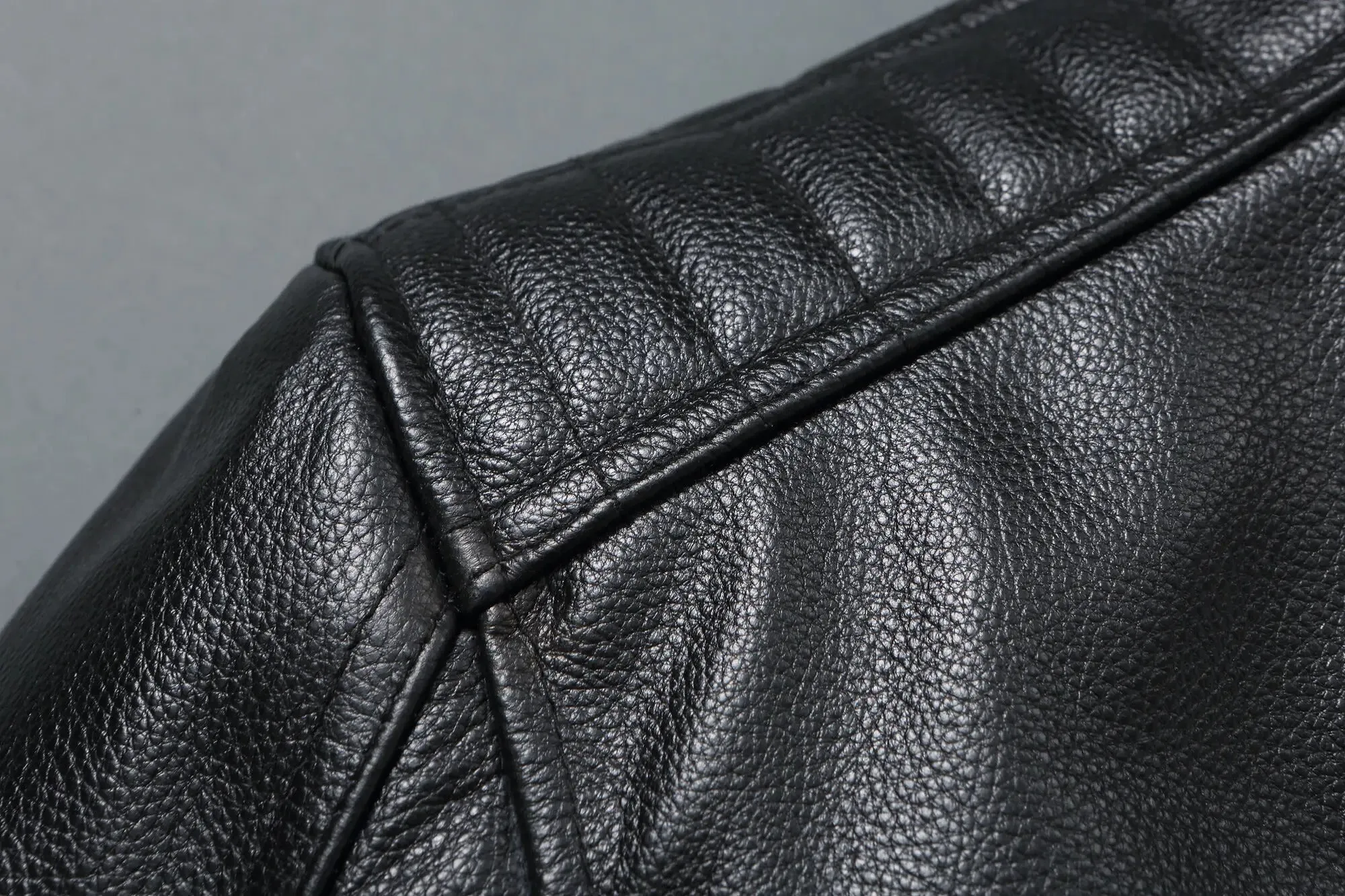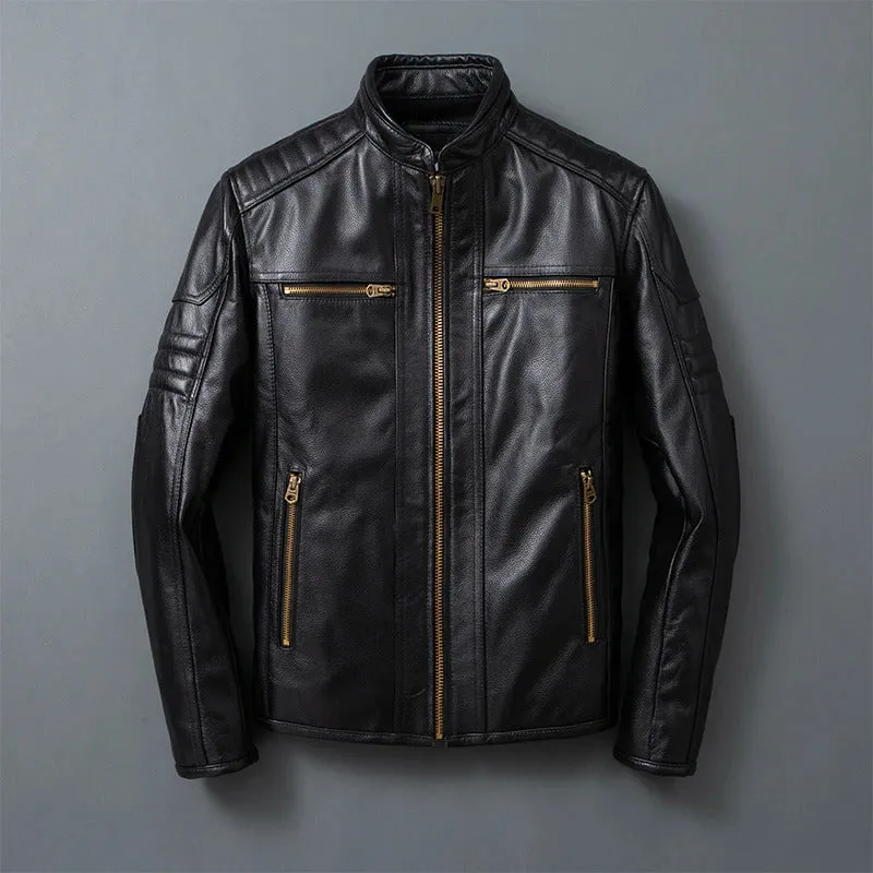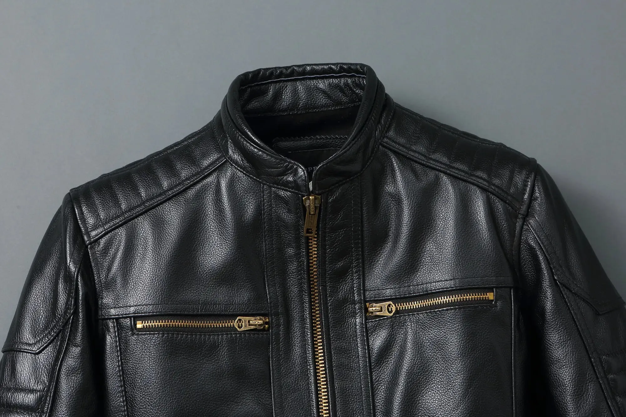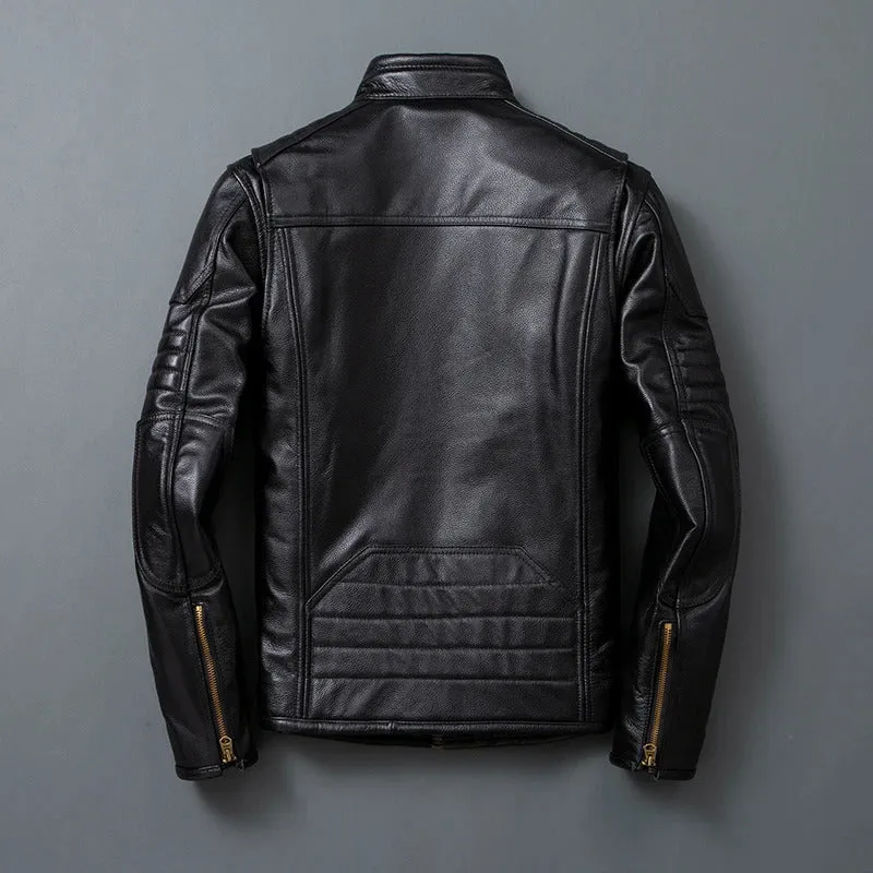 Premium Black Biker Jacket: Classic Men’s Genuine Cowhide Leather