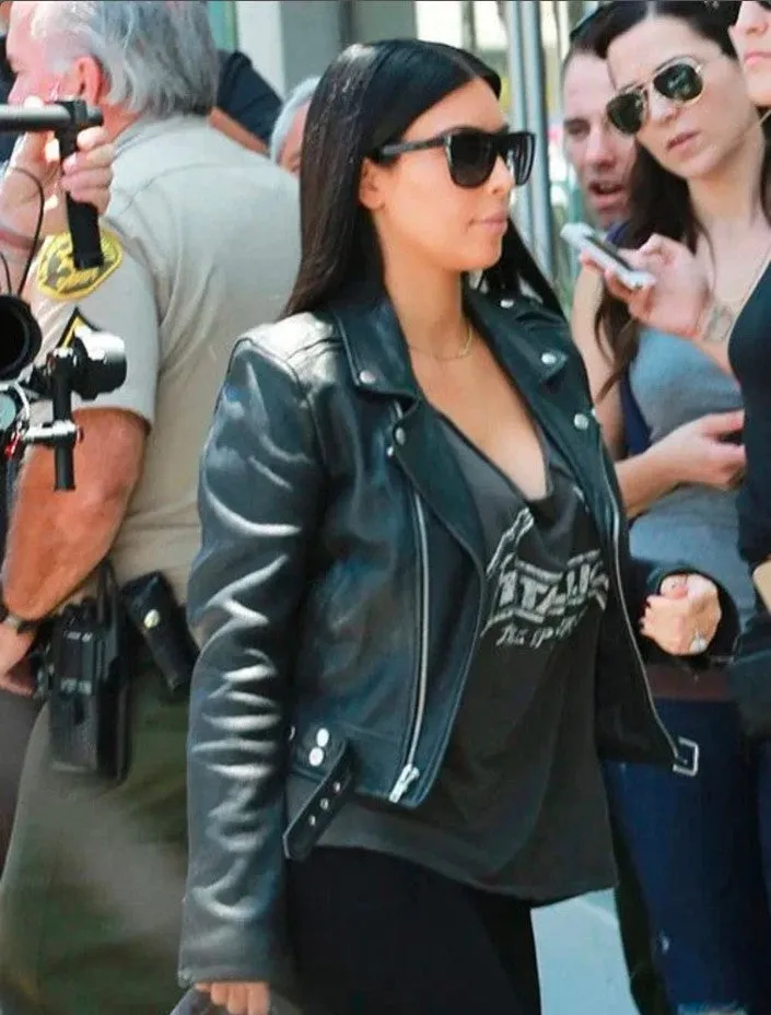Premium Black Motorcycle Leather Jacket Worn By Kim Kardashian | | Women Celebrity Jacket | Celebrity Leather Jacket