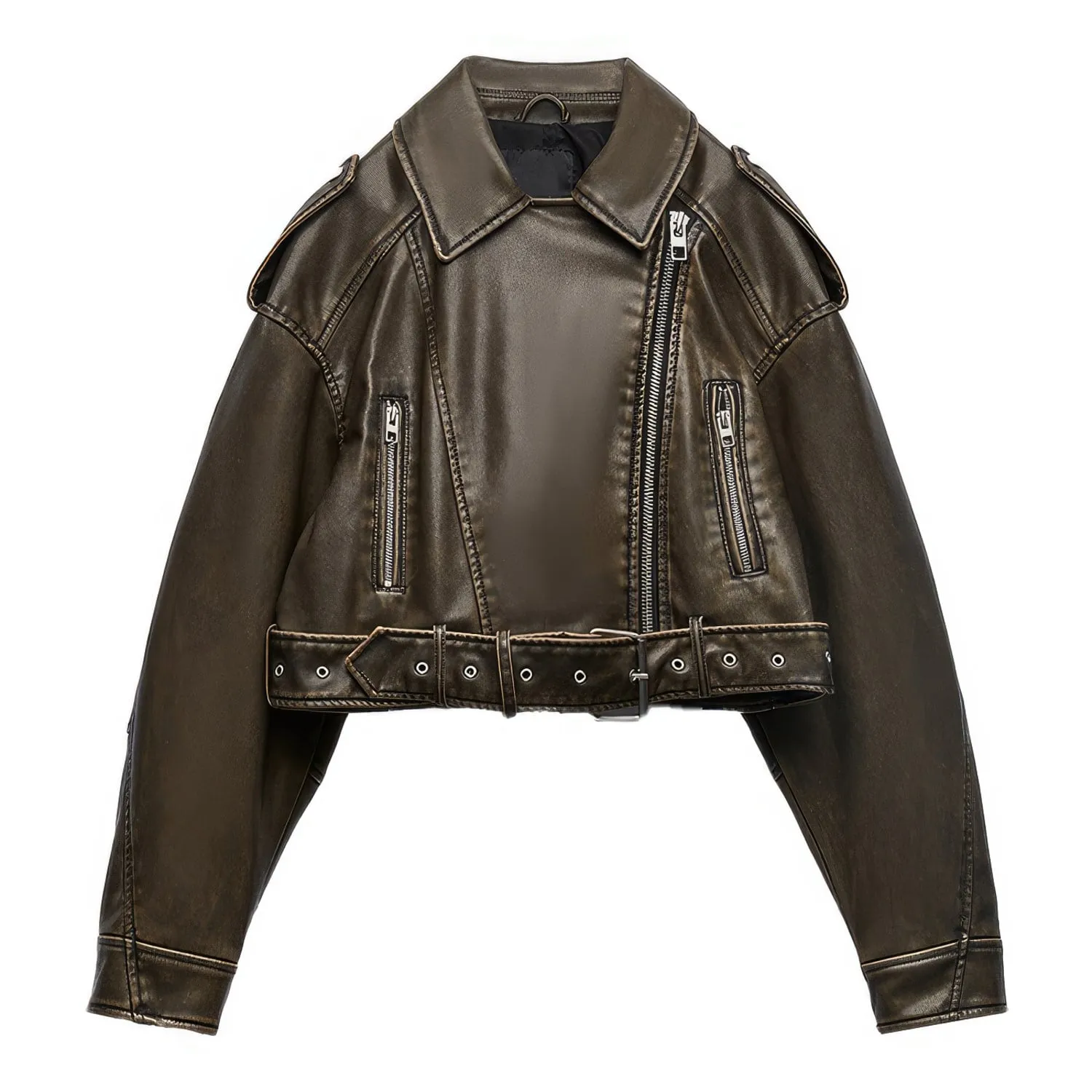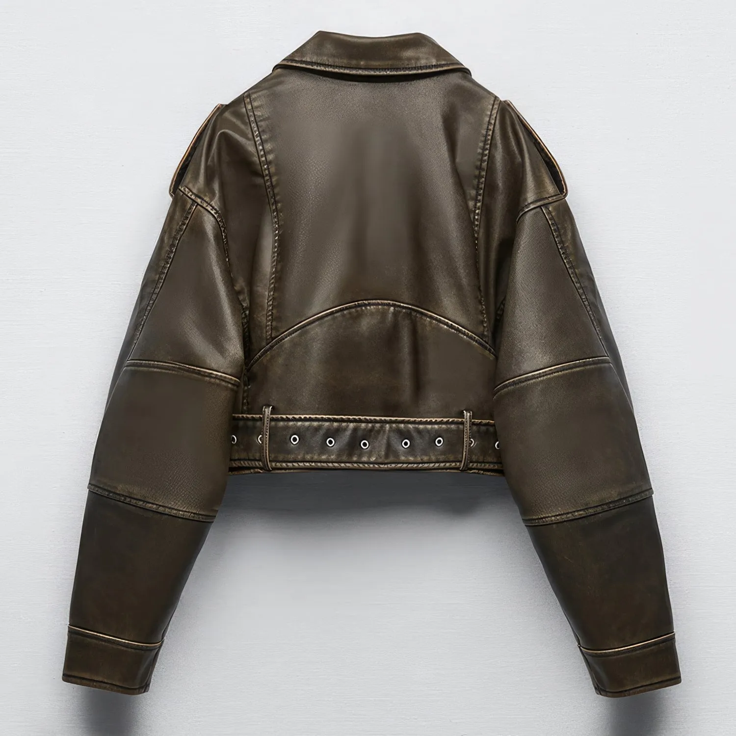 Be the first to review “Womens Biker Vintage Brown Genuine Sheepskin Sporty Casual Moto Biker Lapel Collar Café Racer Streetwear Loose Asymmetric Leather Jacket”