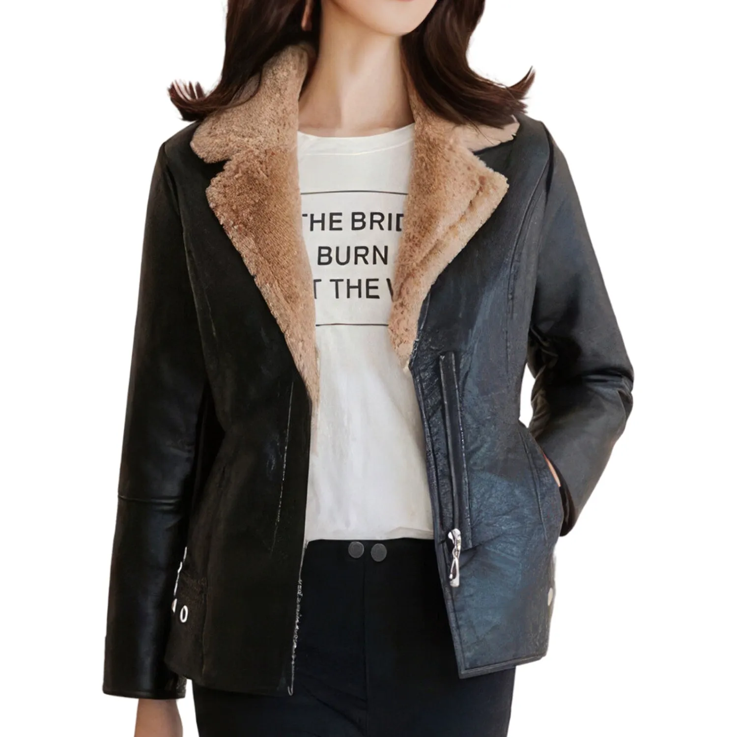 Be the first to review “Womens Black Biker Genuine Sheepskin Sherpa Shearling Faux Fur Lined Café Racer Korean Fashion Motorcycle Slim Fit Leather Jacket”