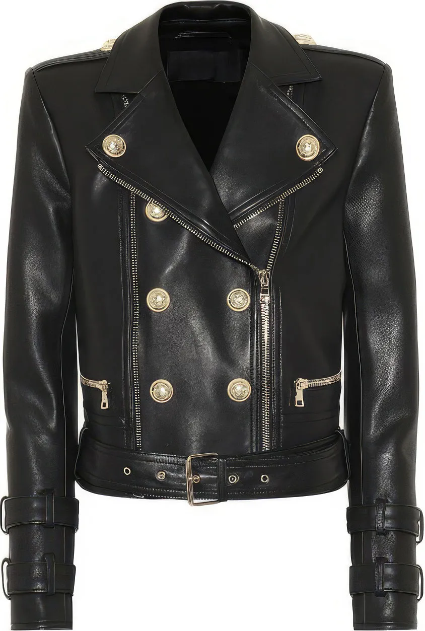 Womens Black Genuine Sheepskin Asymmetric Crossover Fashion Casual Classic Lightweight Rider Leather Jacket