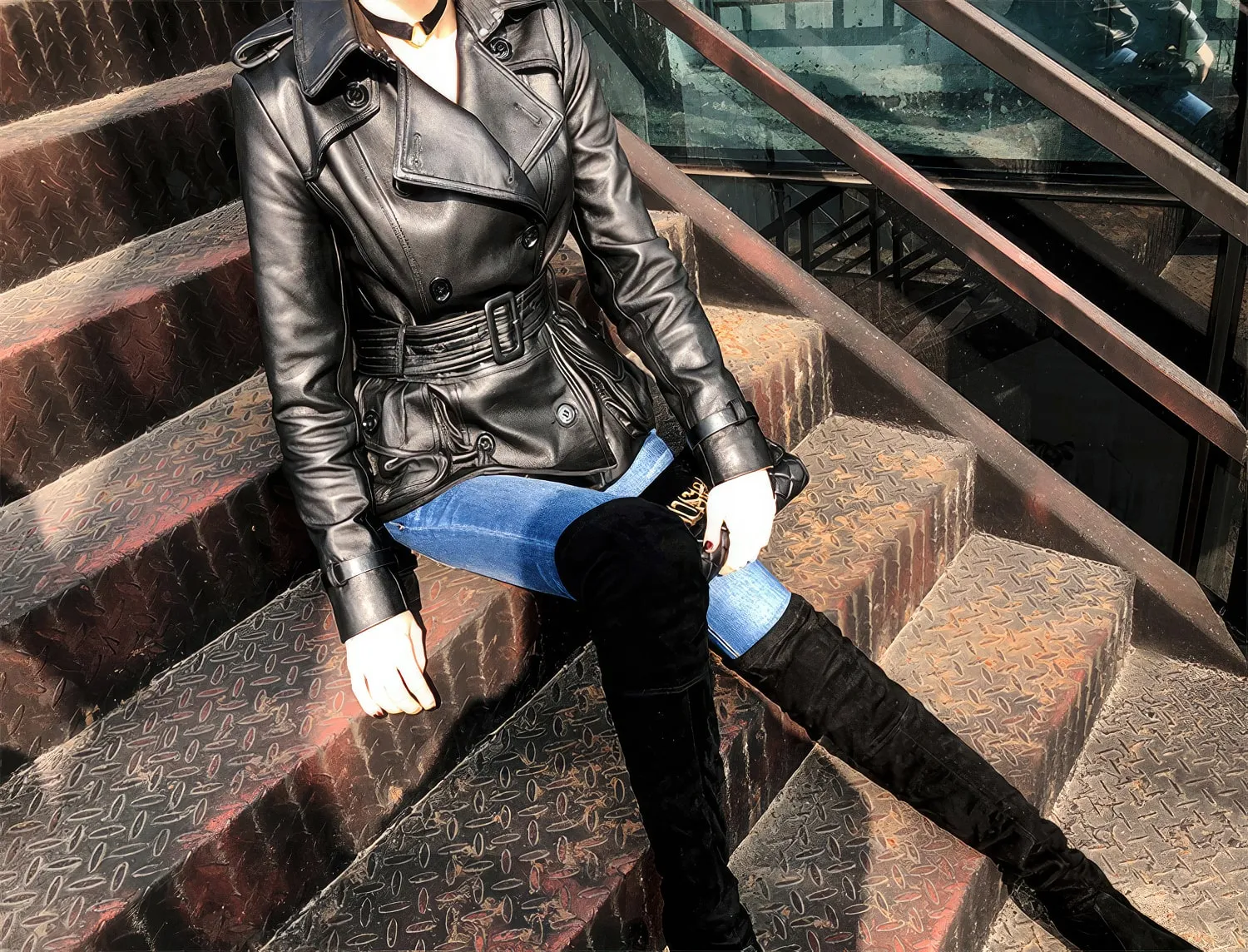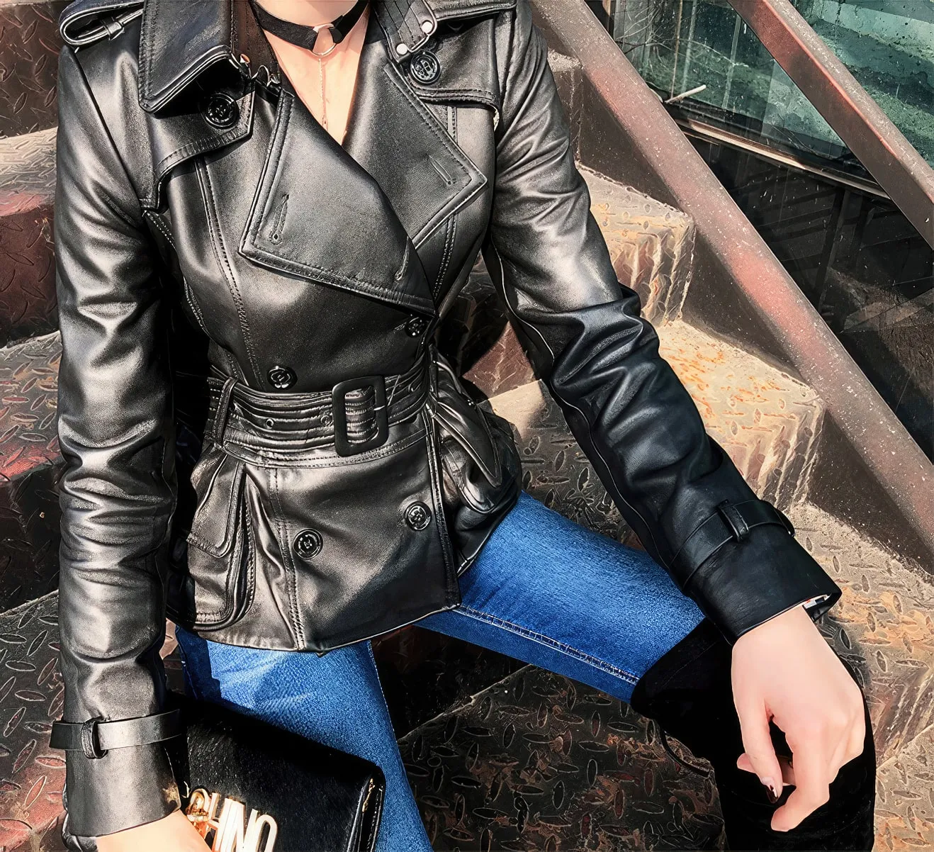 Be the first to review “Womens Black Genuine Sheepskin Double Breasted Classic Moto Racing High-Street Style Belted Short Leather Trench Coat”