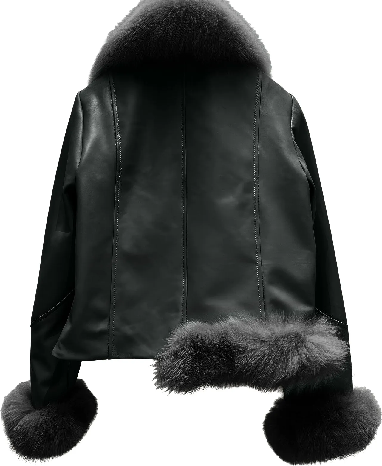 Be the first to review “Womens Black Genuine Sheepskin Sherpa Shearling Faux Fur Collar Elegant Korean Fashion Slim Fit Winter Warm Leather Jacket”