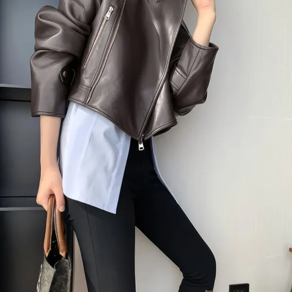 Be the first to review “Womens Brown Biker Genuine Sheepskin Lapel Collar Classic Korean Style Fashion Outfit Short Oversized Real Leather Jacket”