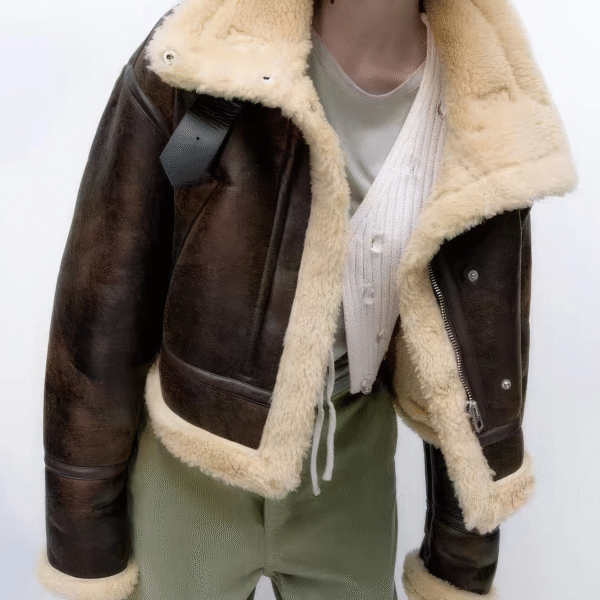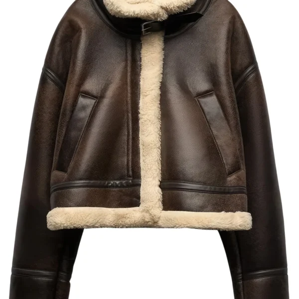 Be the first to review “Womens Distressed Brown Genuine Lambskin Sherpa Shearling Faux Fur Lined Moto Biker Fashion Winter Thick Bomber Leather Jacket”