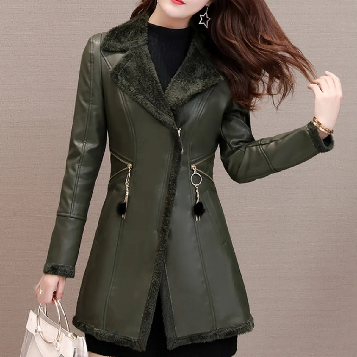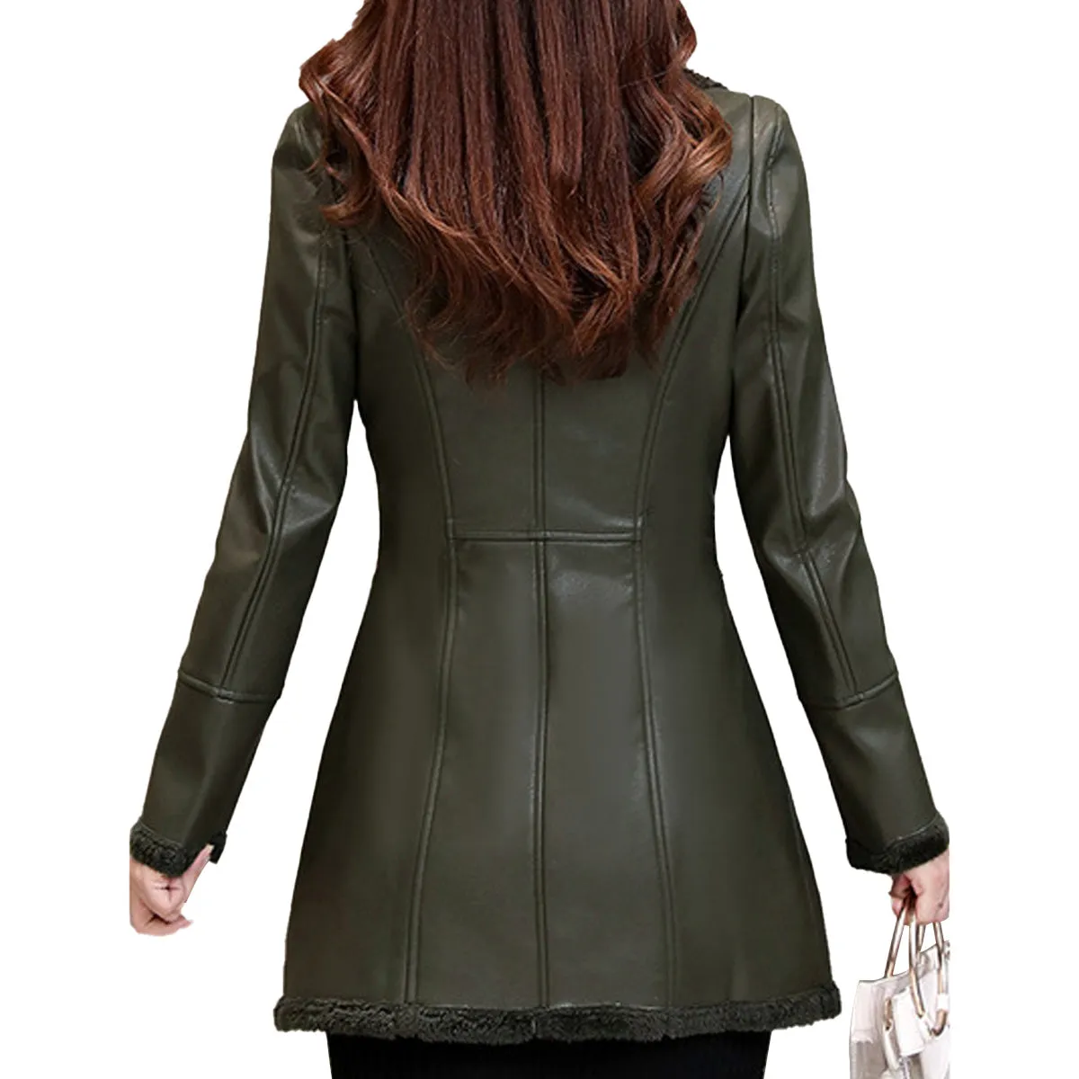 Be the first to review “Womens Green Genuine Sheepskin Lapel Collar Sherpa Shearling Faux Fur Lined Thick Warm Casual Classic Single Breasted Trench Style Leather Coat Jacket”