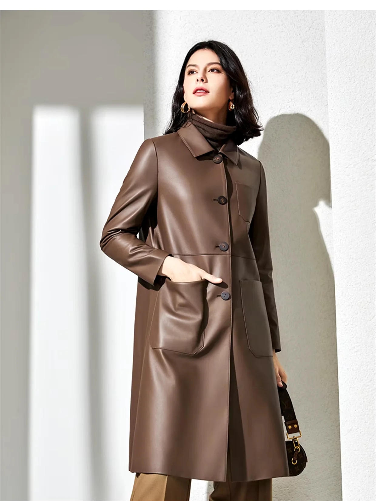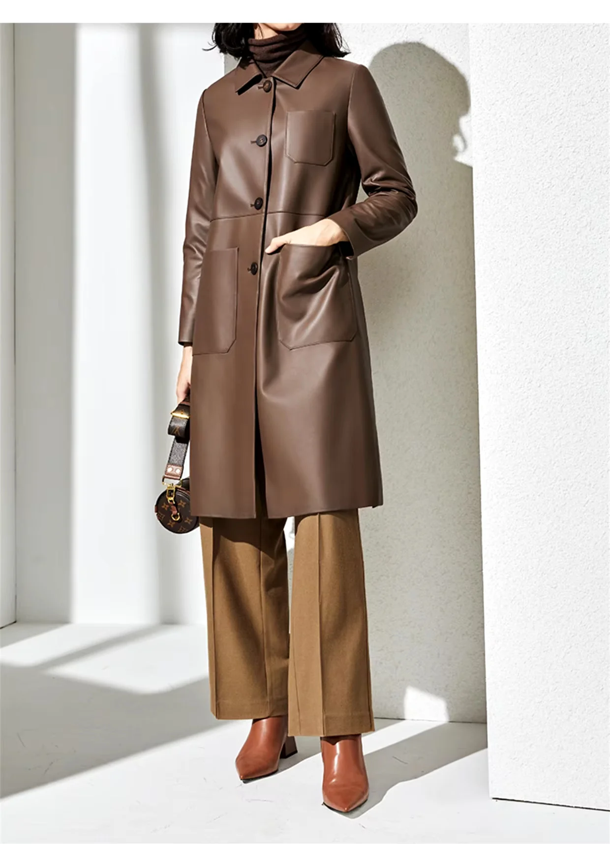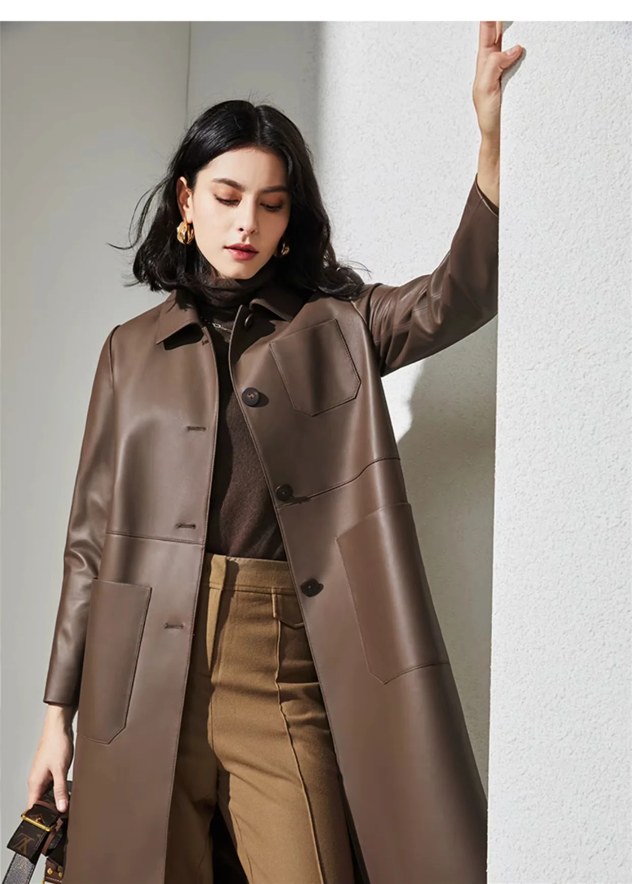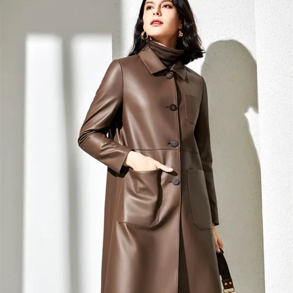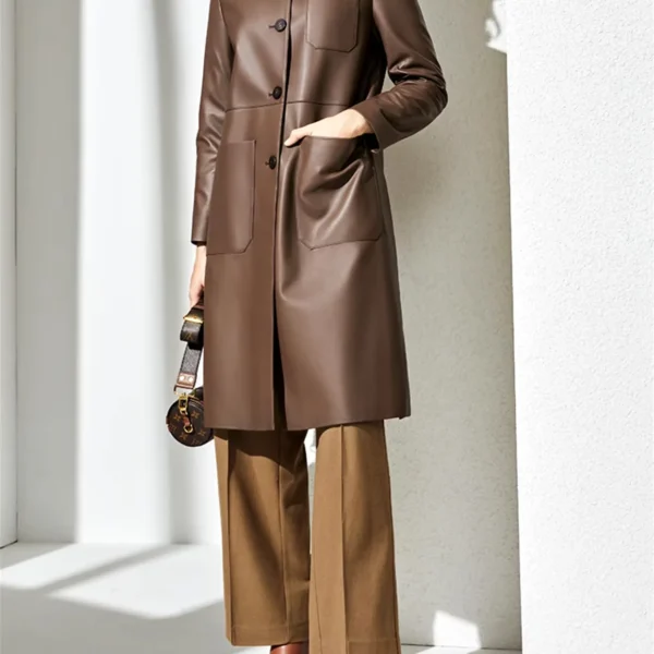 Be the first to review “Women’s Genuine Leather Trench Coat”