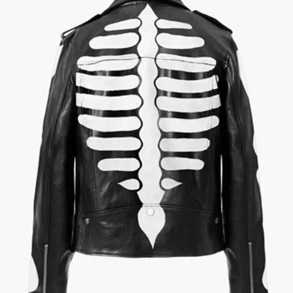 Handmade Men’s Black Skeleton Motorcycle Jacket – Genuine Cowhide Leather