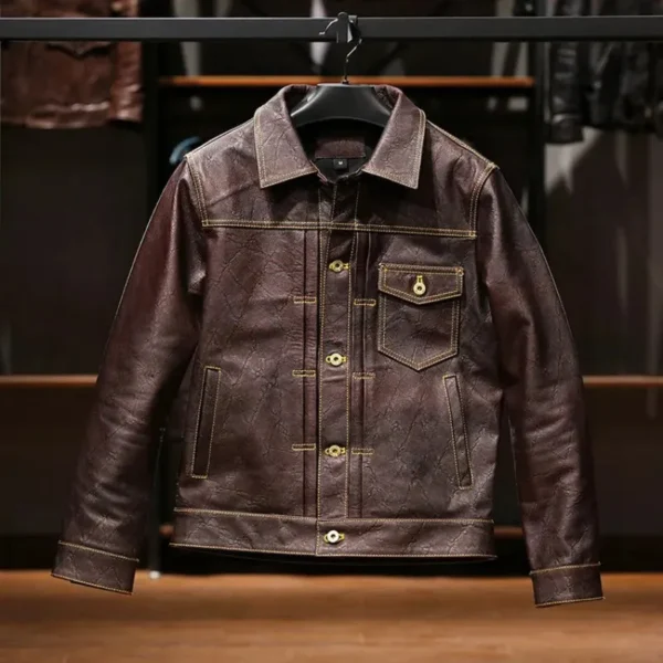 Men’s Vintage Style Cowhide Leather Motorcycle Jacket – Premium Quality
