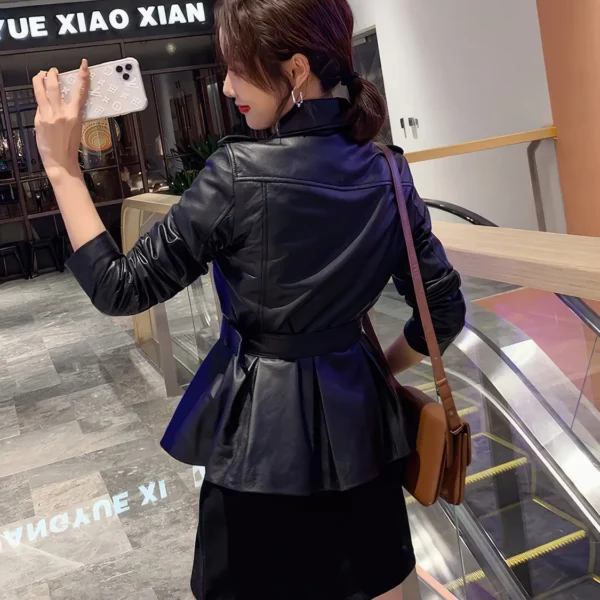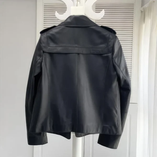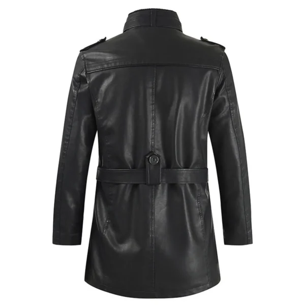 Men’s Black Genuine Sheepskin Stand Collar Motorcycle Biker Warm Casual Leather Coat Jacket